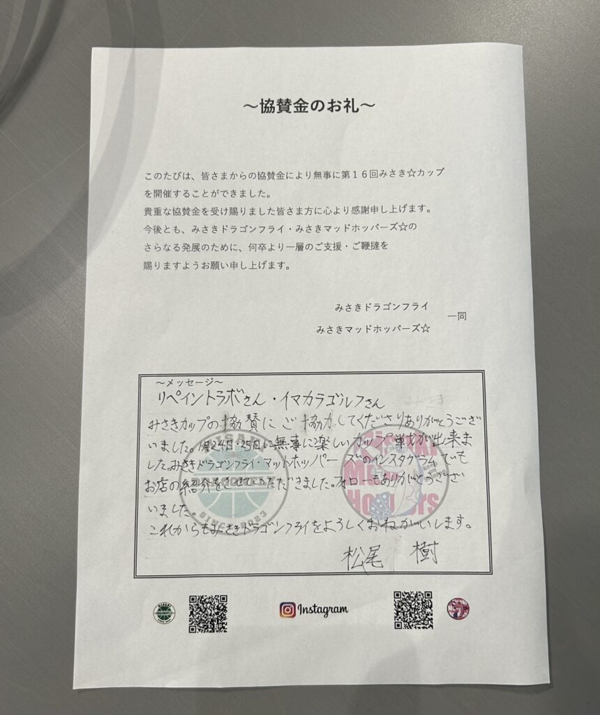 このたび、みさきドラゴンフライ様へ協賛させていただき、