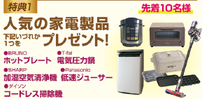 ≪特典1≫選べる!家電製品プレゼント