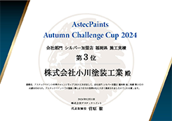 アステックペイント秋季チャレンジカップ2024 フッ素REVO部門 福岡県 施工実績第1位