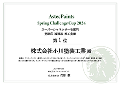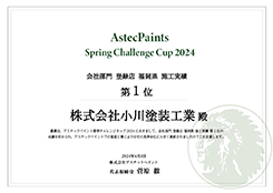 アステックペイント春季チャレンジカップ2024 会社部門 全国 施工実績第1位