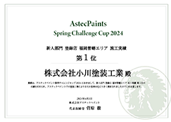 アステックペイント春季チャレンジカップ2024 新人部門 福岡県 施工実績第1位